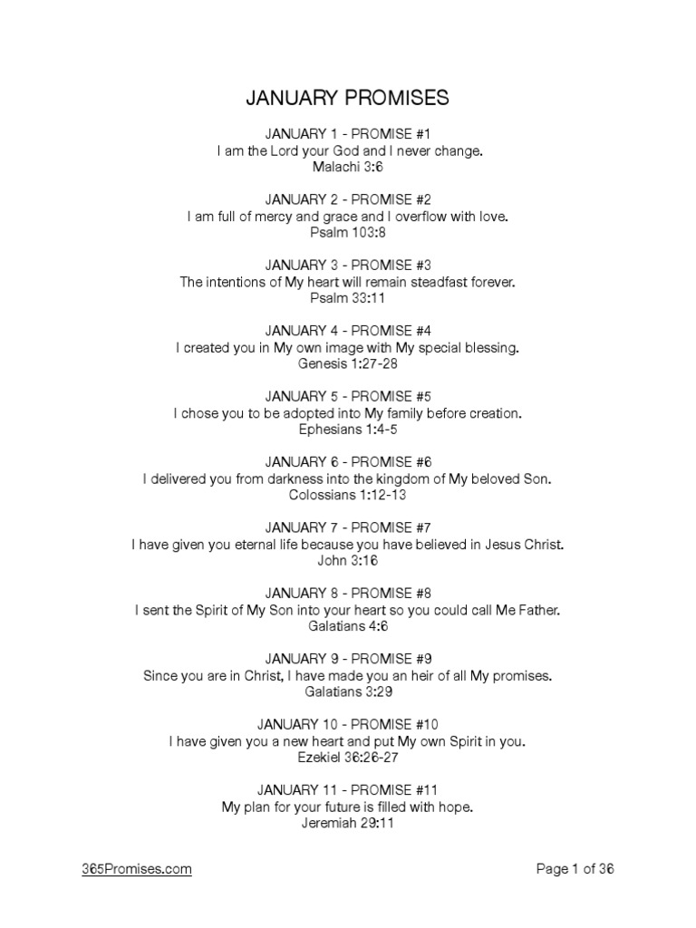 Print the text of all 365 Promises in a PDF format. 978-1432115951 Item Weight. Click on the link below to download the text of all 365 Promises in a printable 36 page PDF format.